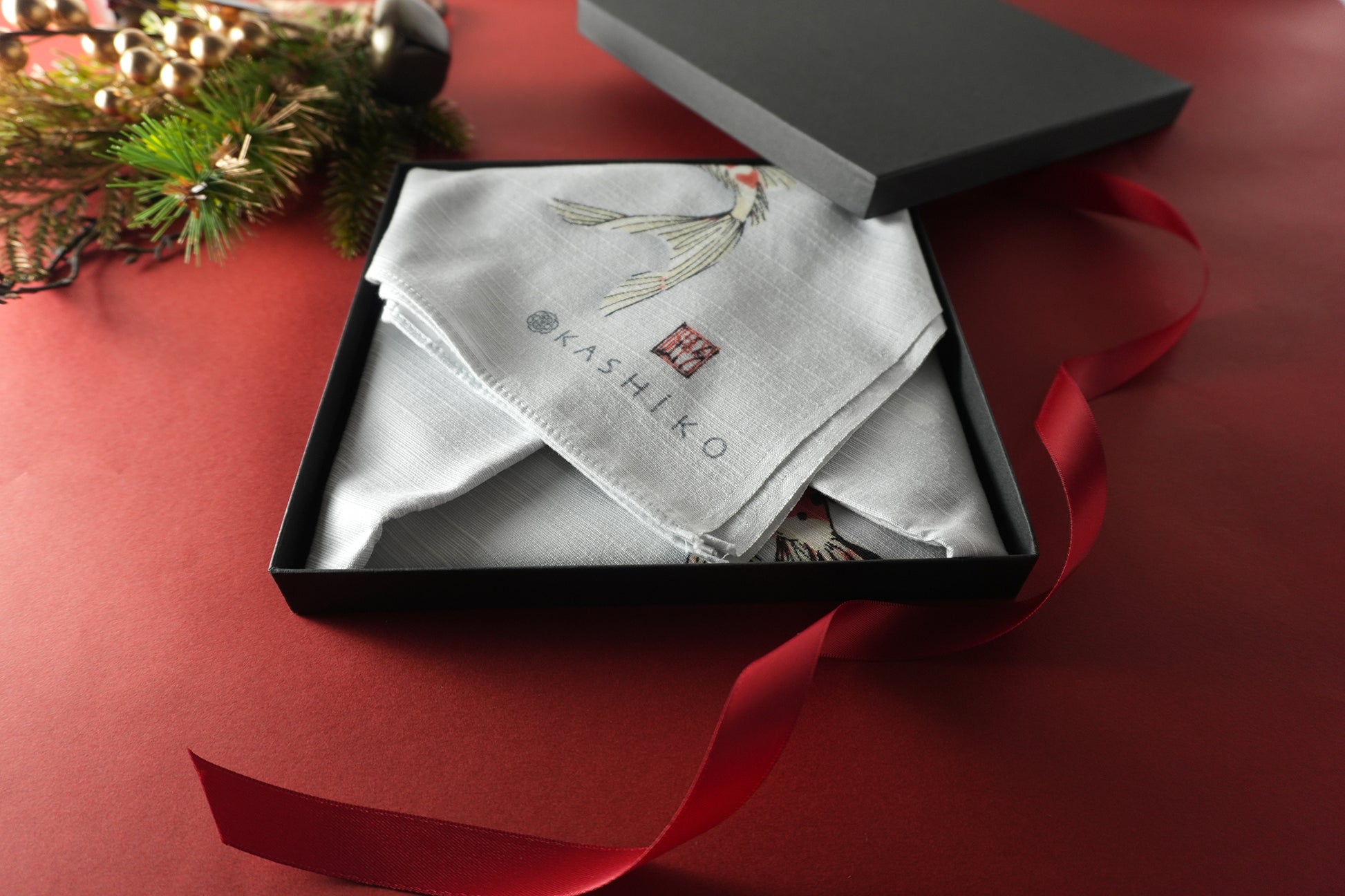 These reusable gift wraps are carefully dyed one by one by Kyoto artisans who have inherited traditional techniques. Each furoshiki embodies the warmth of the artisan and the spirit of the season.