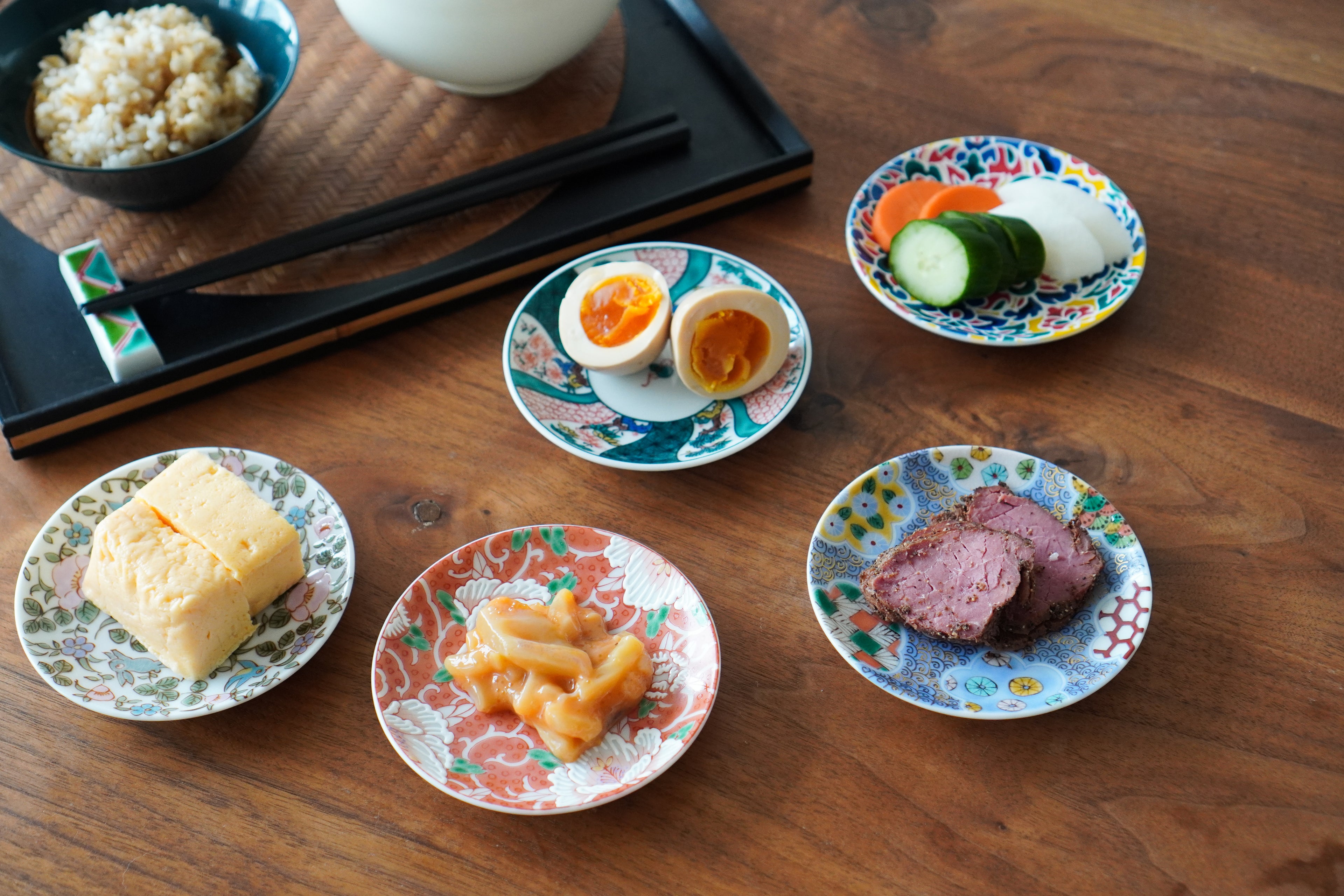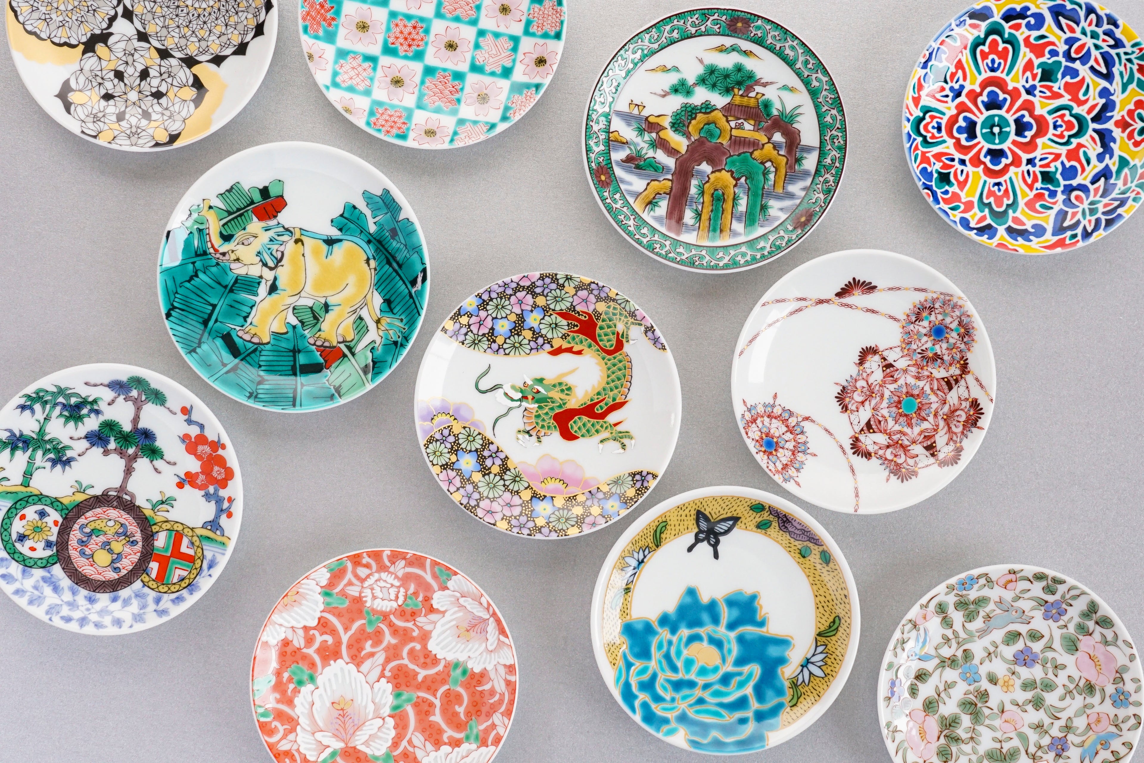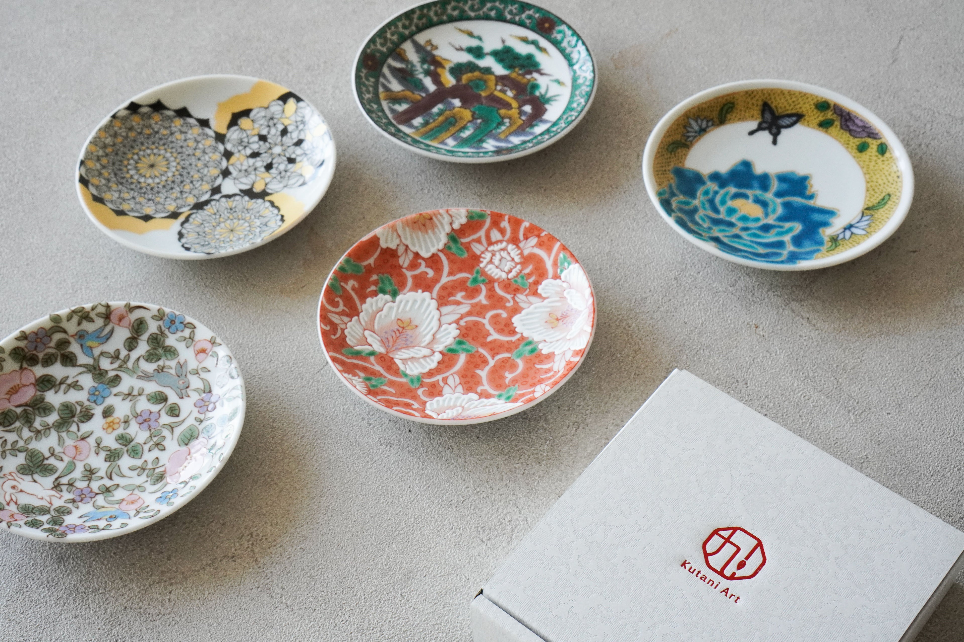 Small, beautiful dishes supervised by a Kutani ware artist from Kanazawa.