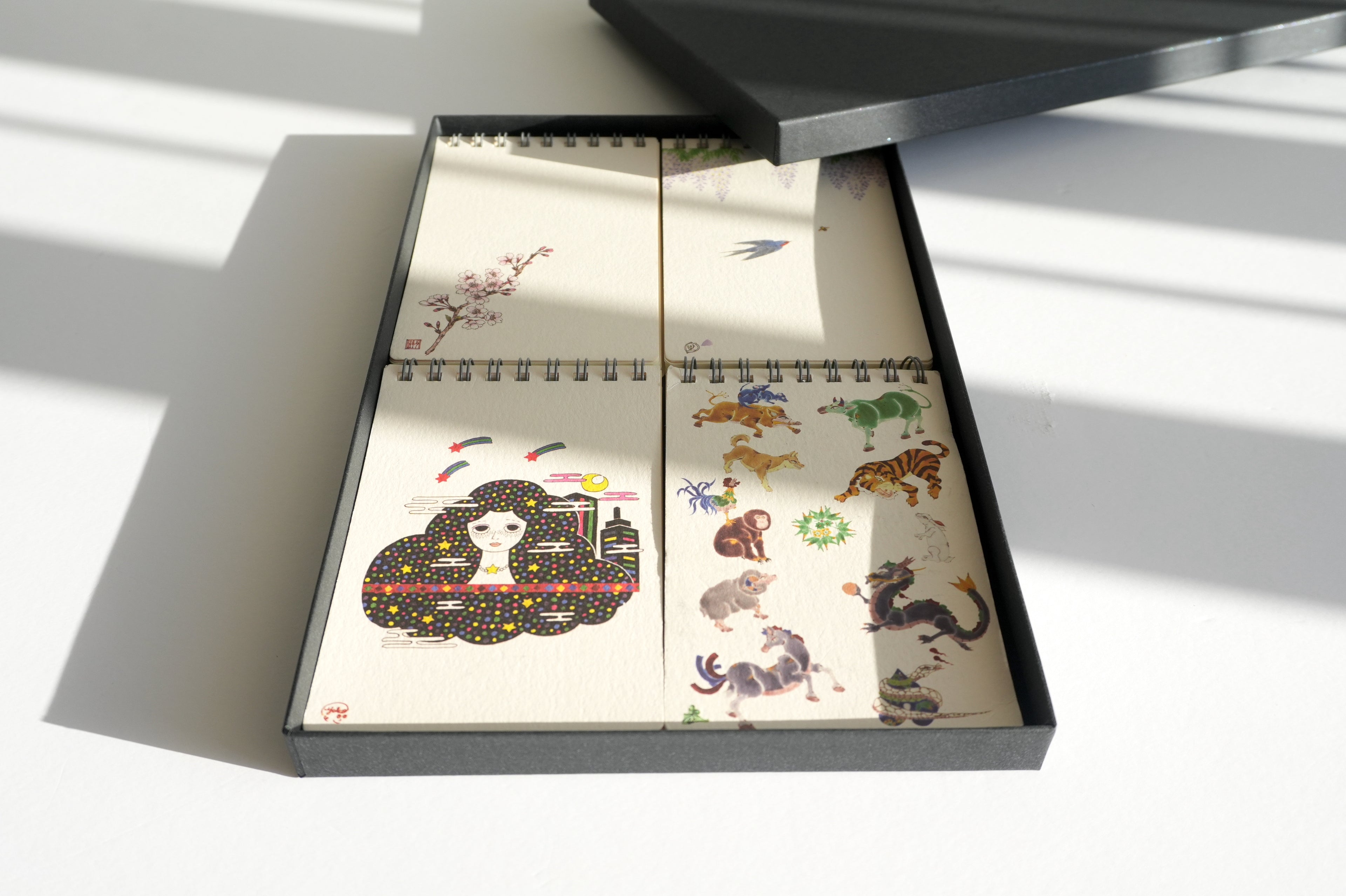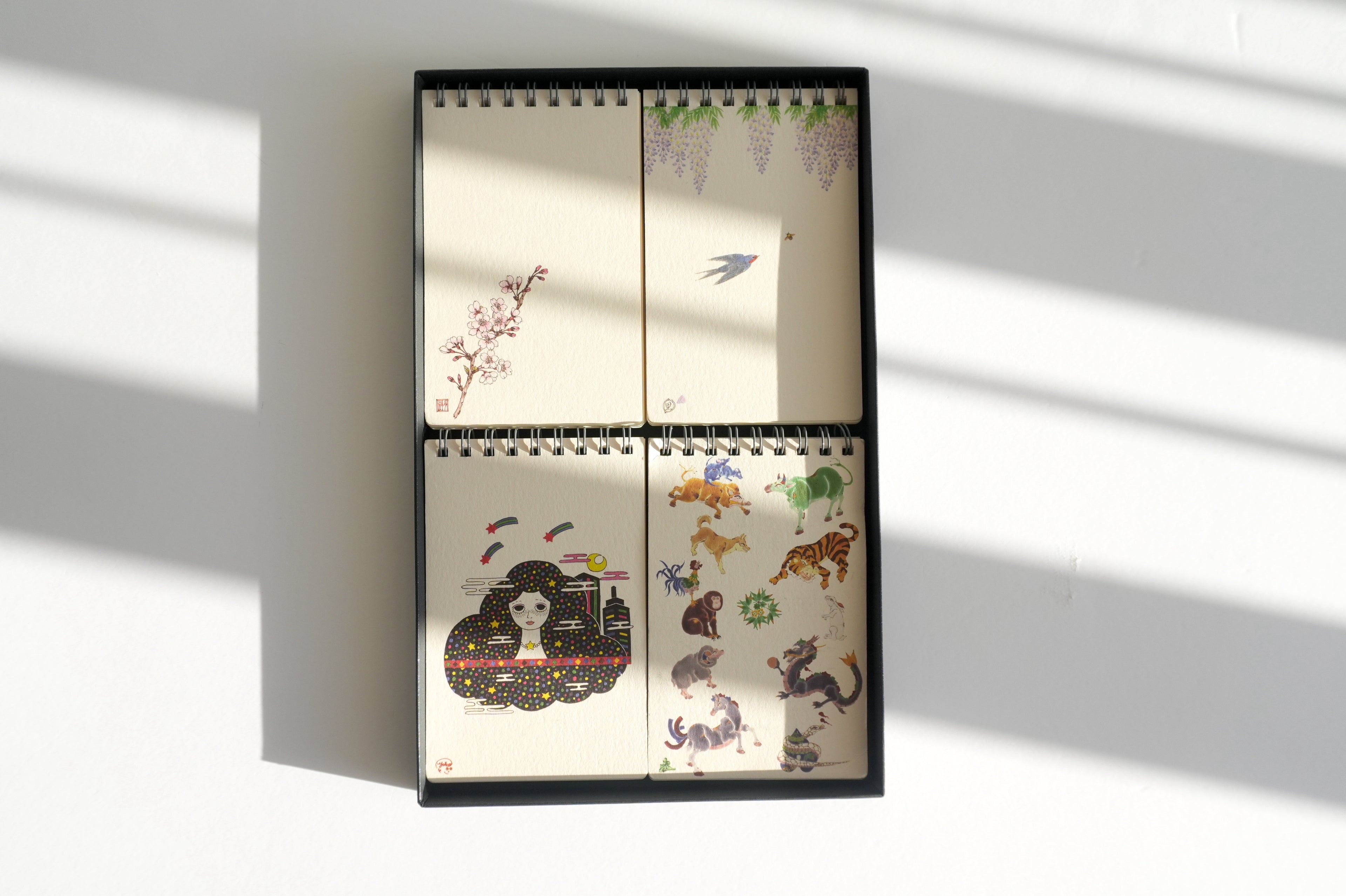New ring notebook set of 4 (not for sale) A limited edition gift set with notebooks of different designs. Delivered in KASHIKO original craft wrapping.