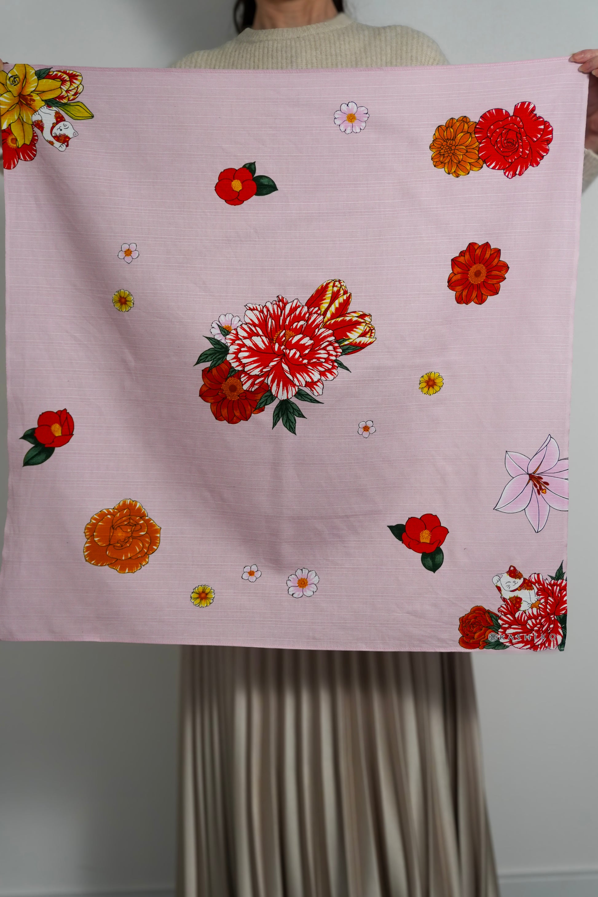 Hand-dyed furoshiki (flower-filled maneki-neko)