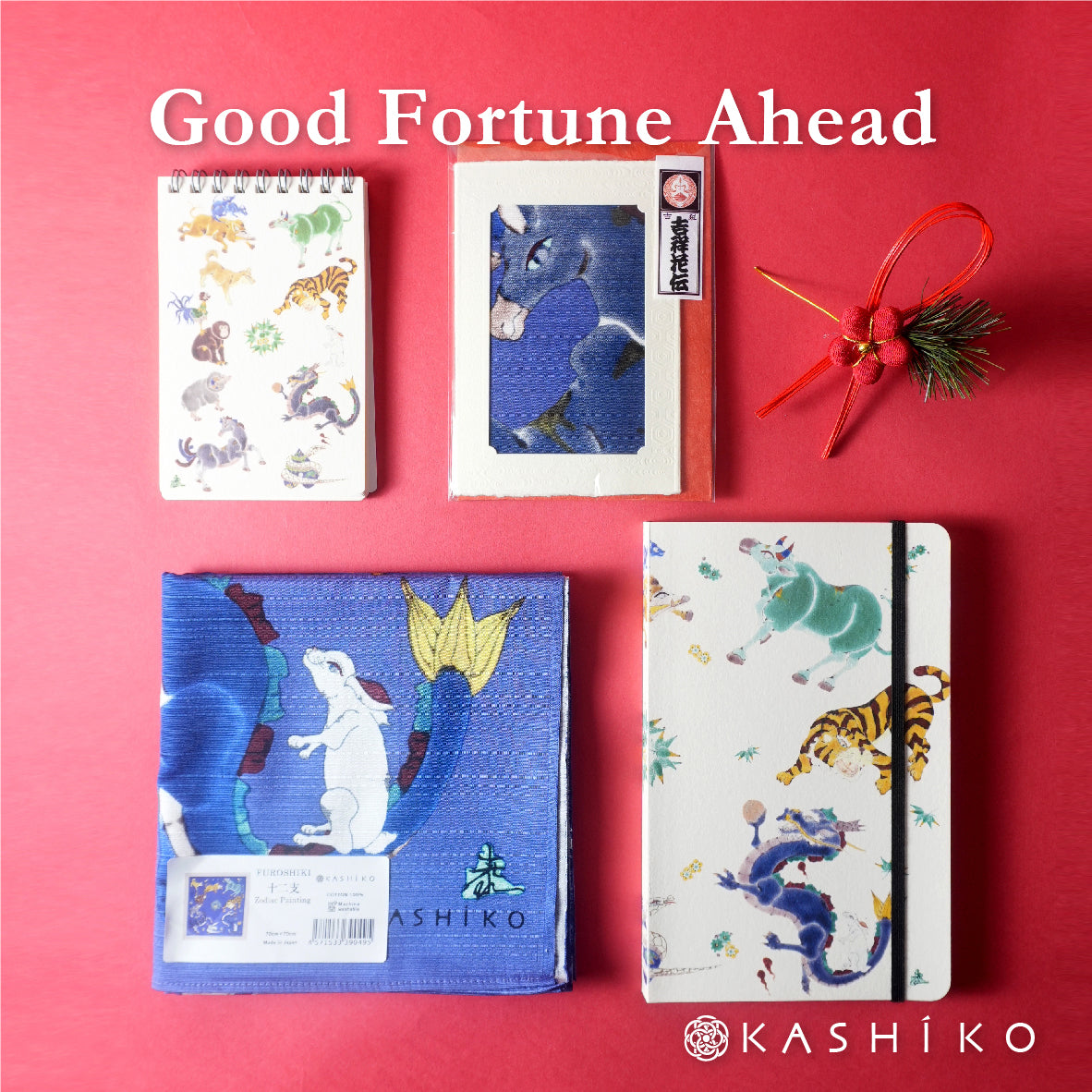 La papeterie et les cadeaux porte-bonheur de KASHIKO, fabriqués au Japon, vous accompagneront durant les fêtes de fin d'année. Carnets, marque-pages dorés, papiers cadeaux aux couleurs du zodiaque, cartes de vœux et bien plus encore sont parfaits pour préparer la nouvelle année.