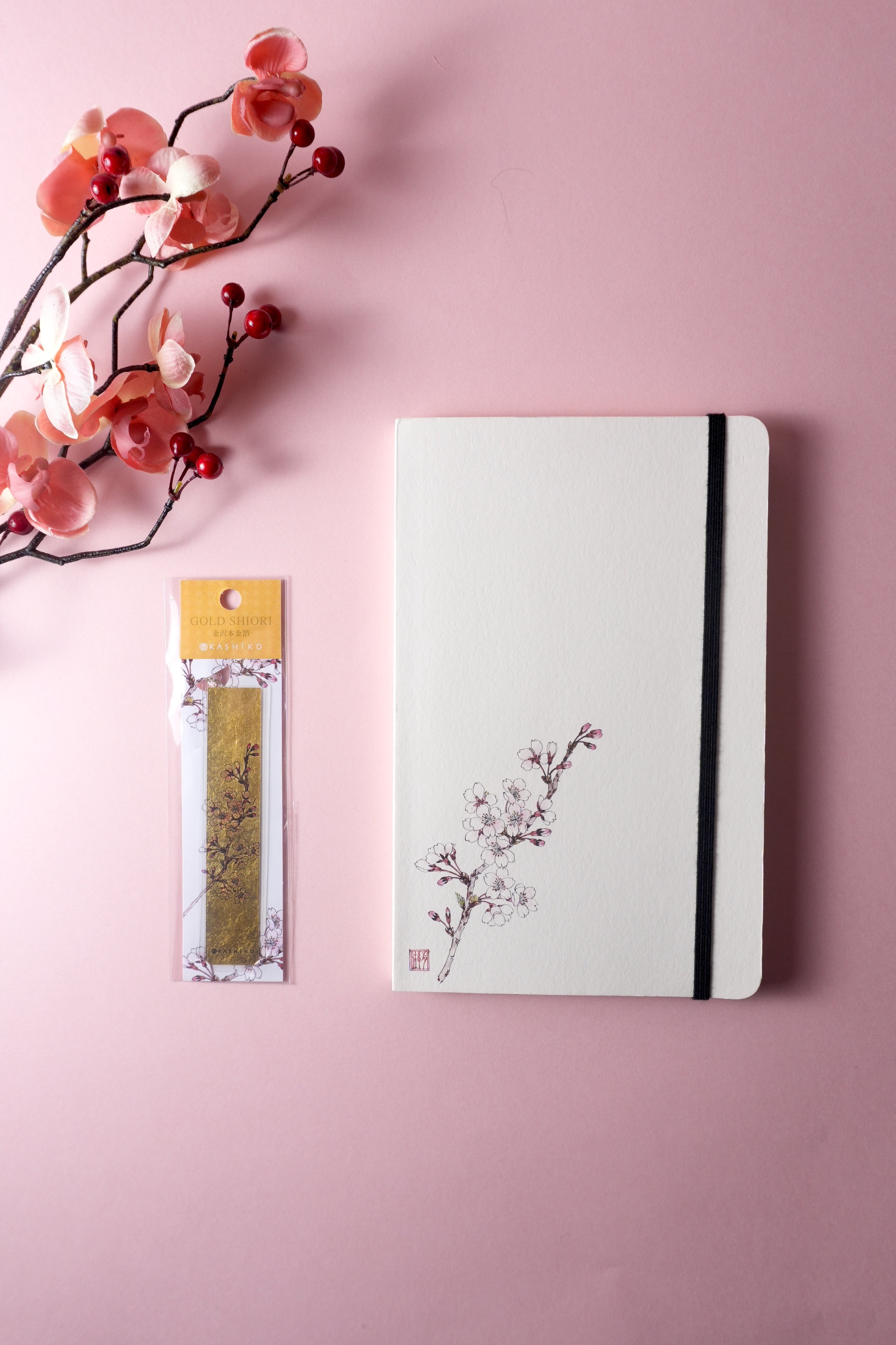 "GOLD SHIORI <Sakura> | Marque-page en aluminium Kanazawa, design d'artiste Kutani ware, fabriqué au Japon"
