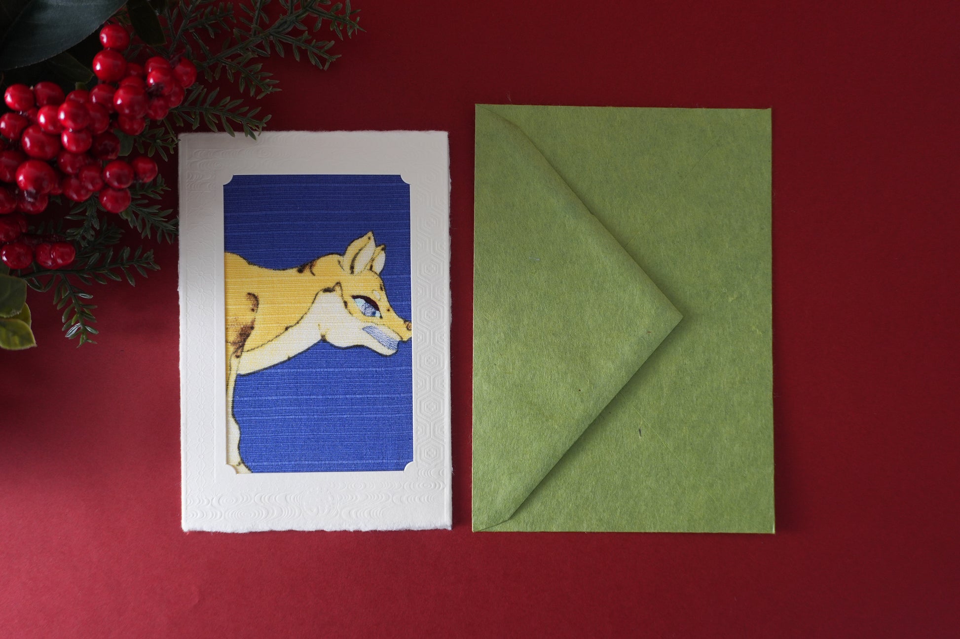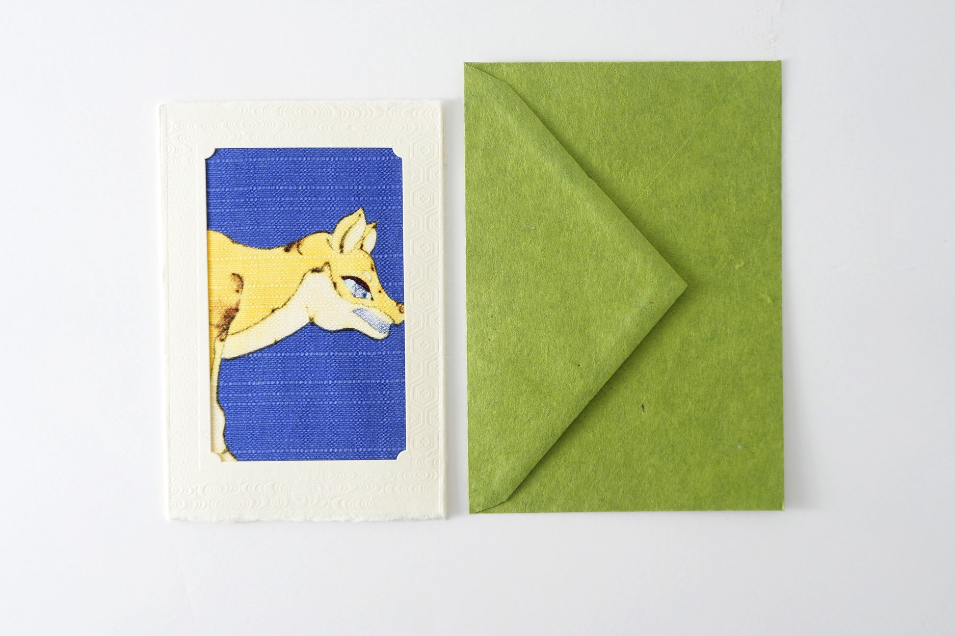 Carte : papier washi d’Echizen (fabriqué au Japon) Enveloppe : papier Izumo Mingei (fabriqué au Japon) Tissu : 100 % coton
