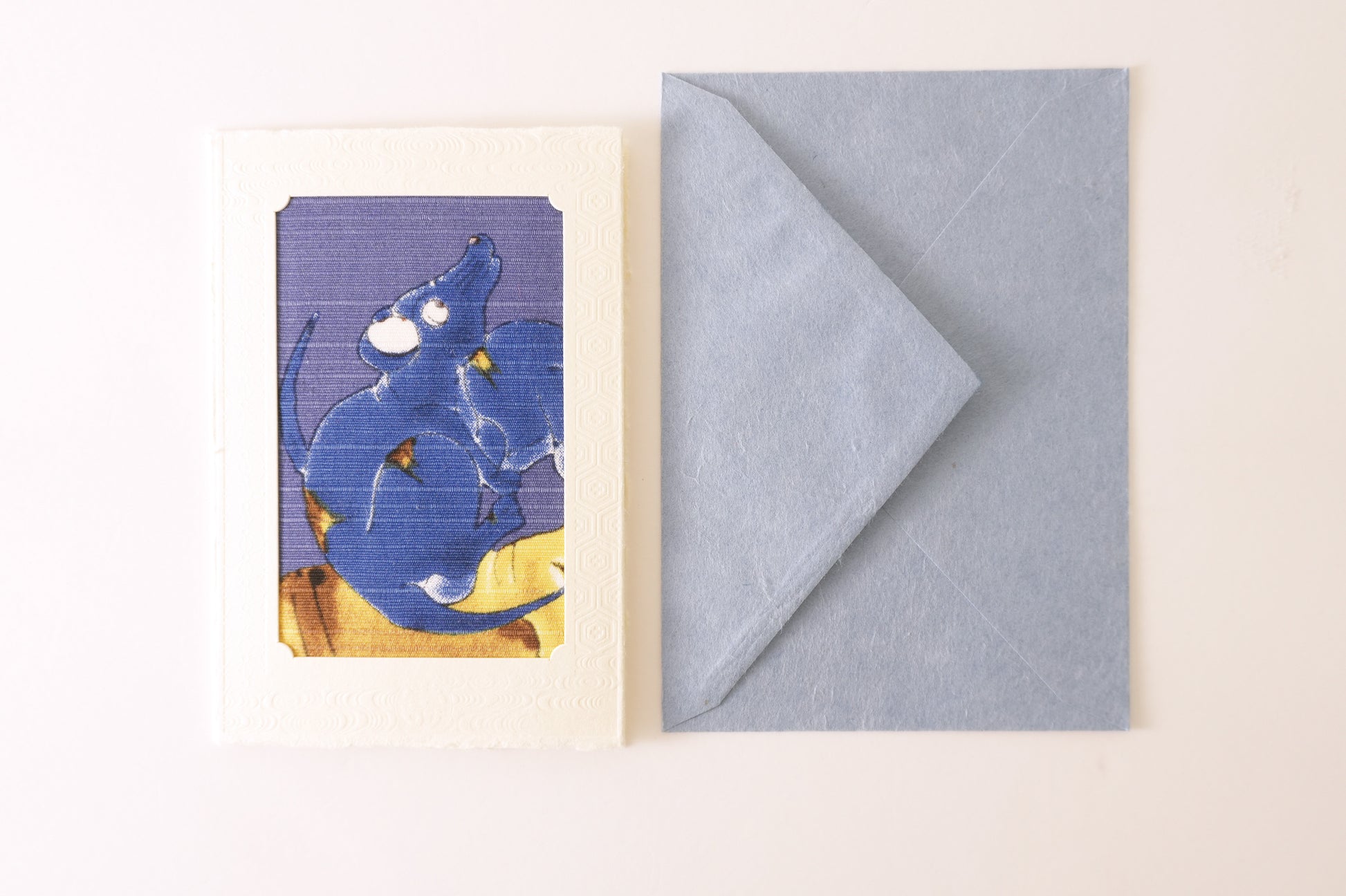 Carte : papier washi d’Echizen (fabriqué au Japon) Enveloppe : papier Izumo Mingei (fabriqué au Japon) Tissu : 100 % coton