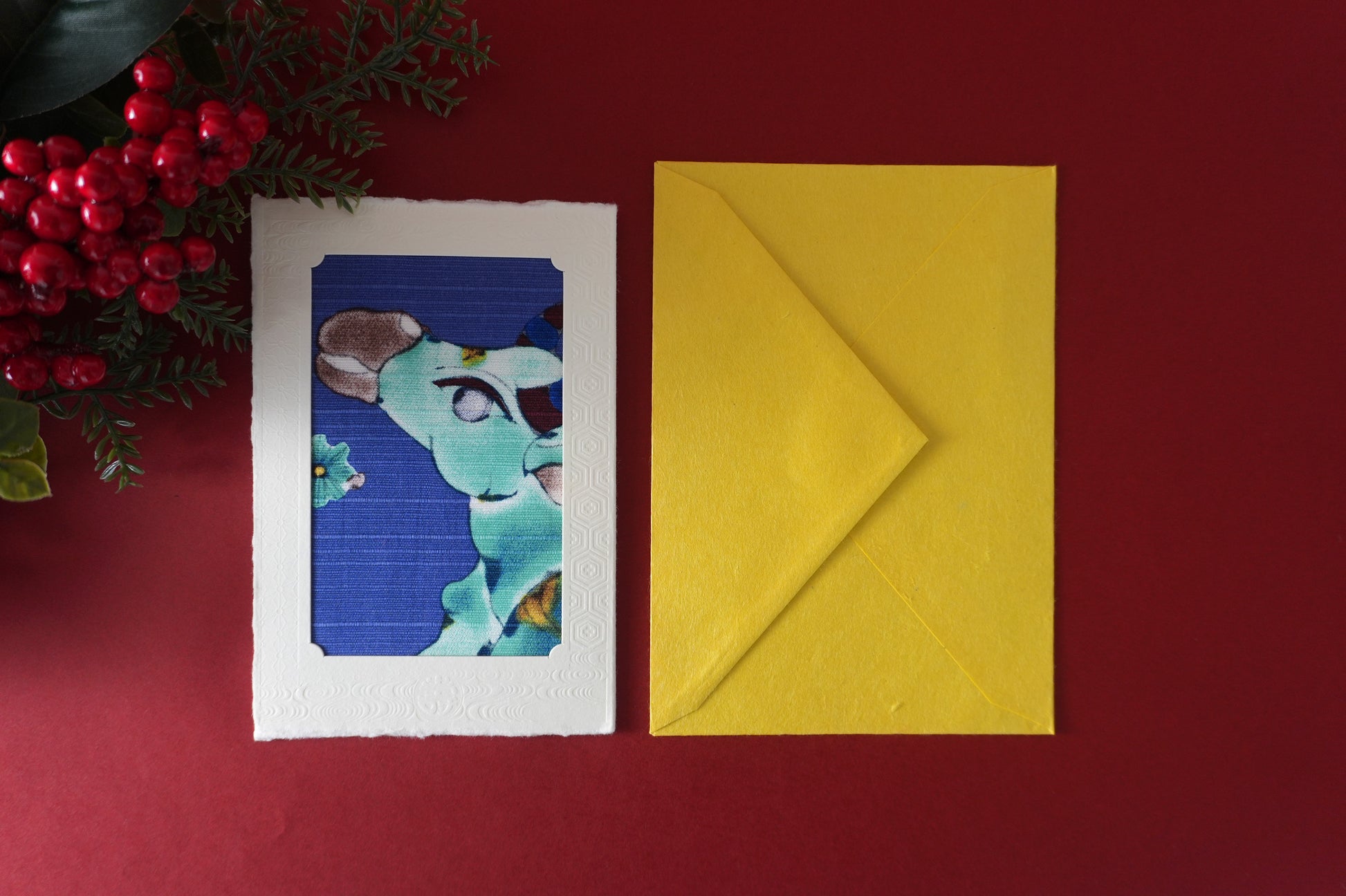 Carte : papier washi d’Echizen (fabriqué au Japon) Enveloppe : papier Izumo Mingei (fabriqué au Japon) Tissu : 100 % coton