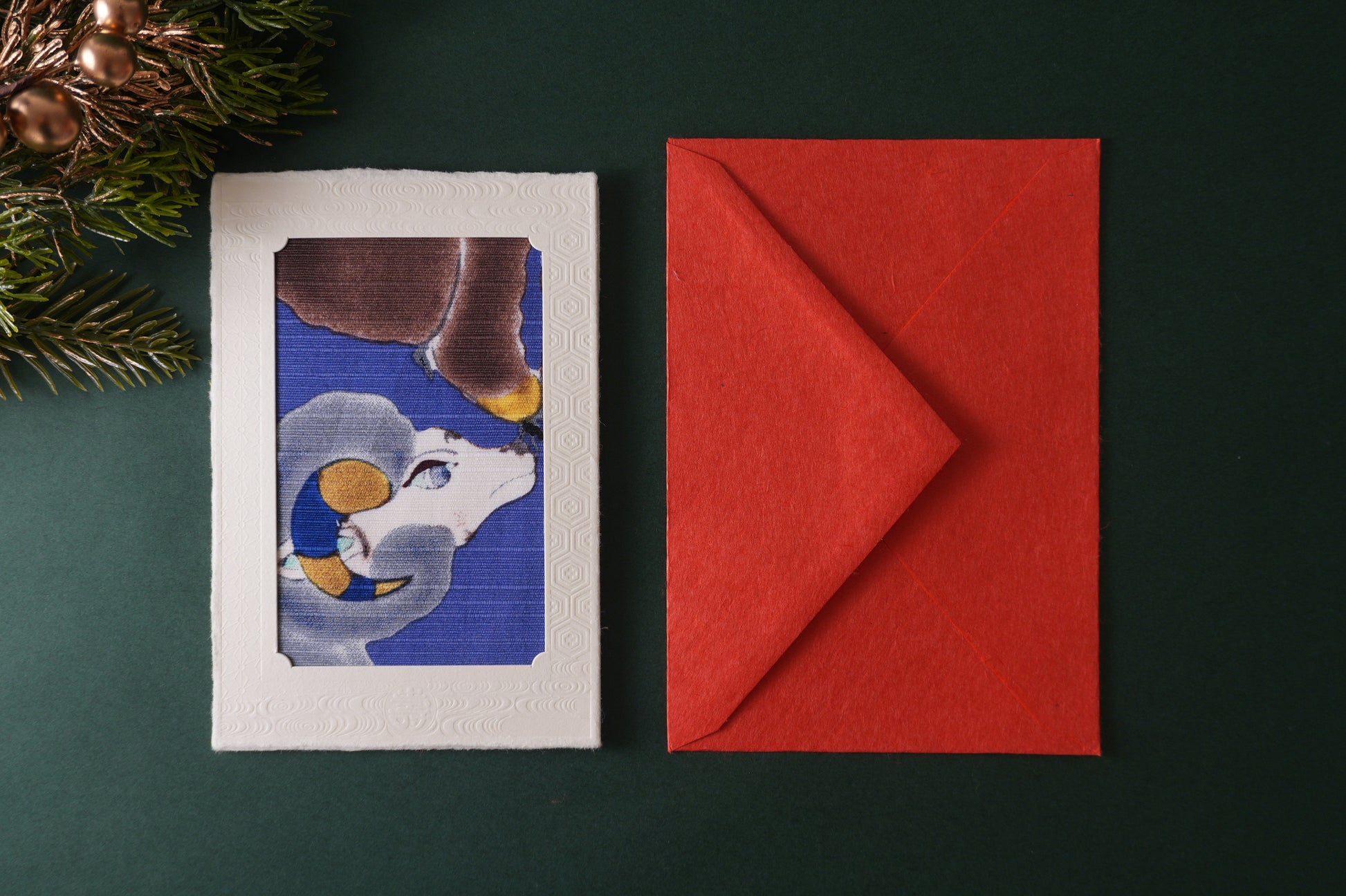 Carte : papier washi d’Echizen (fabriqué au Japon) Enveloppe : papier Izumo Mingei (fabriqué au Japon) Tissu : 100 % coton